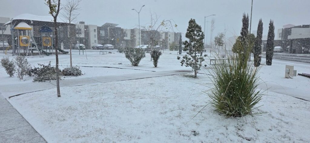 La nevada se registró en diversos puntos de la ciudad, generando un ambiente inusual para la zona, conocida por sus temperaturas extremas y su clima desértico. Las imágenes difundidas en redes muestran el impacto del fenómeno, así como la reacción de la población ante un evento que no es común en la frontera.