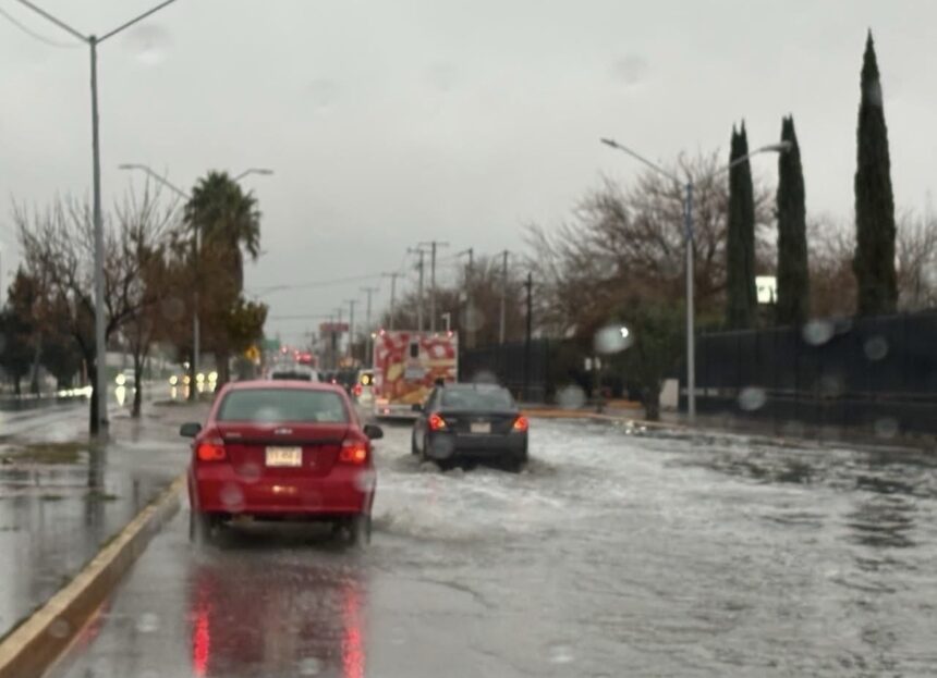 ¡Al rescate! Policías municipales auxilian a conductores varados tras intensas lluvias en Juárez.